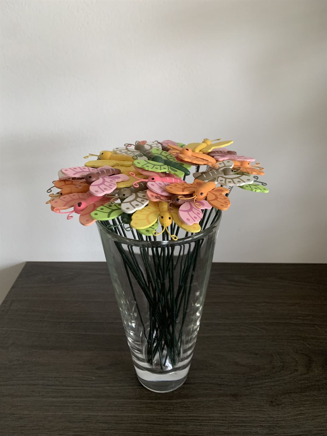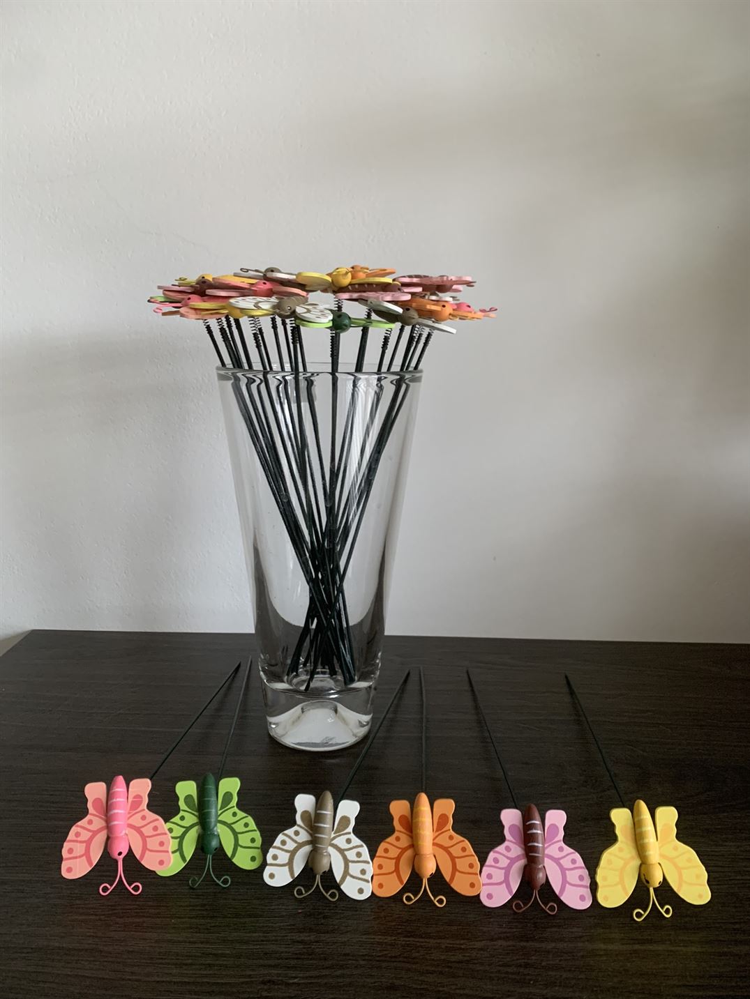 Materiál: kovová tyčka, dřevěný motýlek