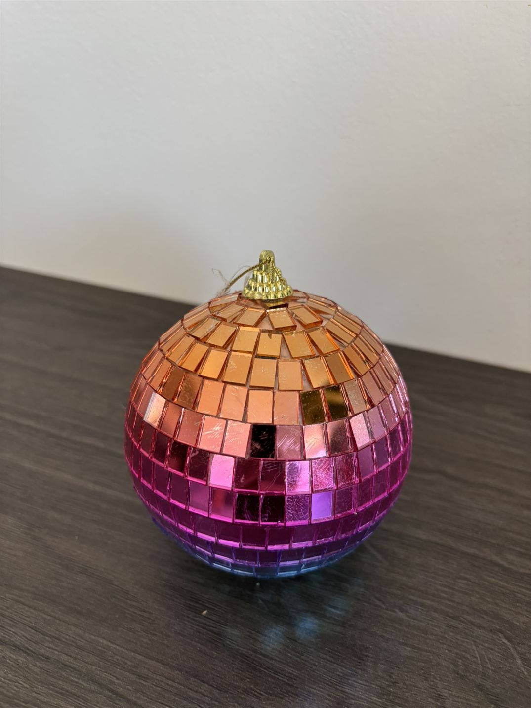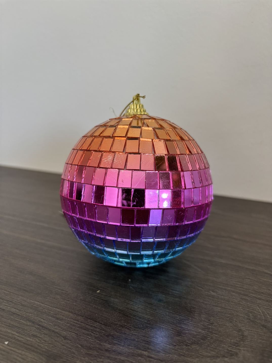 Materiál: sklo, skleněná koule polepená malými plíšky
